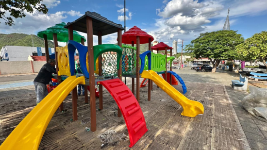 Prefeitura de Barra do Garças inicia montagem de playgrounds na praça da Matriz