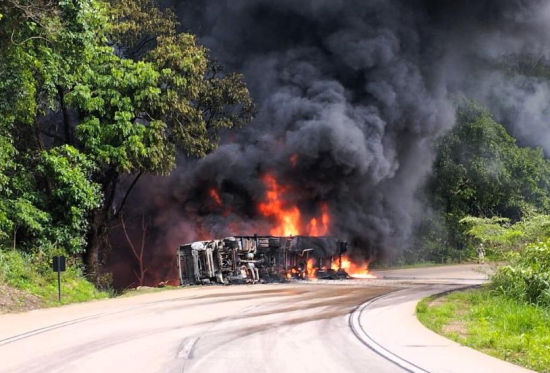 A equipe da 11ª Companhia Independente Bombeiro Militar (11ª CIBM) foi acionada por volta das 14h. E segundo as informações repassadas, as chamas se espalharam rapidamente, consumindo a carreta, a cabine, a carroceria e toda a carga.