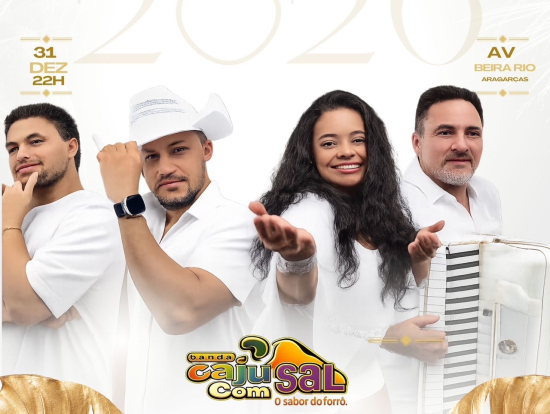 A programação inclui a tradicional queima de fogos, marcando simbolicamente a virada do ano, além de um grande show da banda Caju com Sal – O Sabor do Forró, diretamente de Goiânia para Aragarças. Com um repertório animado e dançante, a banda promete contagiar o público e transformar a Avenida Beira Rio em um grande palco de celebração popular.
