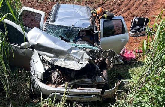 Bombeiros resgatam vítima presa às ferragens e socorrem três após acidente na BR-070