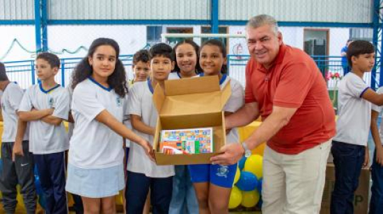 Na ocasião, também foram entregues kits de informática, além de outros equipamentos destinados às unidades escolares, com o objetivo de fortalecer a estrutura pedagógica e administrativa dos centros de ensino da rede municipal.