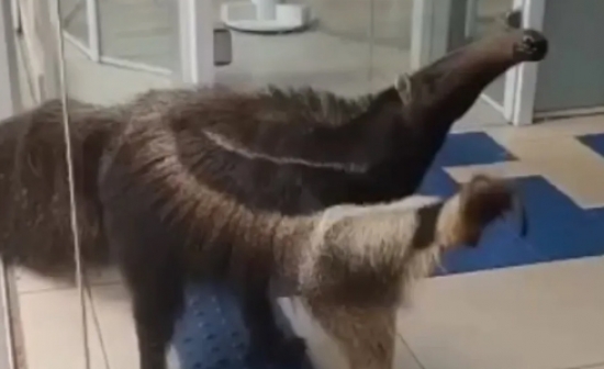 Tamanduá ‘passeia’ em agência bancária