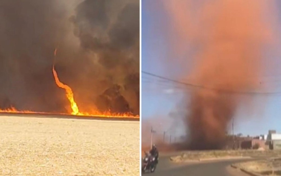 Moradores de Rio Verde, no sudoeste de Goiás, foram surpreendidos por redemoinhos de fogo e poeira que deixaram a população em estado de alerta. Um vídeo registrado por um morador mostra o impressionante fenômeno em chamas no meio de uma plantação, enquanto outro vídeo capturou um redemoinho de poeira no centro da cidade. As cenas chocantes também foram registradas por câmeras de segurança, que mostraram o redemoinho de poeira se aproximando perigosamente das casas.