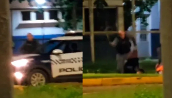 Nas imagens, é possível ver um dos policiais agredindo o rapaz com um cassetete antes de ele se agachar. Em seguida, a mulher, mesmo já ajoelhada, também é golpeada por outro policial. Os dois acabam deitados no chão após a sequência de agressões.