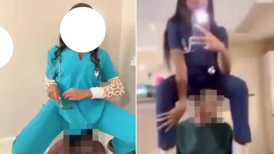 Outro vídeo mostra a enfermeira rebolando sobre outro homem com deficiência, que estava sentado em uma cadeira e aparentemente incapaz de reagir.