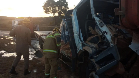 De acordo com o Corpo de Bombeiros, o caminhão conduzido pelo motorista ferido colidiu na traseira de outro veículo de grande porte. Um passageiro que estava na cabine também ficou ferido e recebeu atendimento do Serviço de Atendimento Móvel de Urgência (Samu) no local. O condutor do outro caminhão não se feriu.