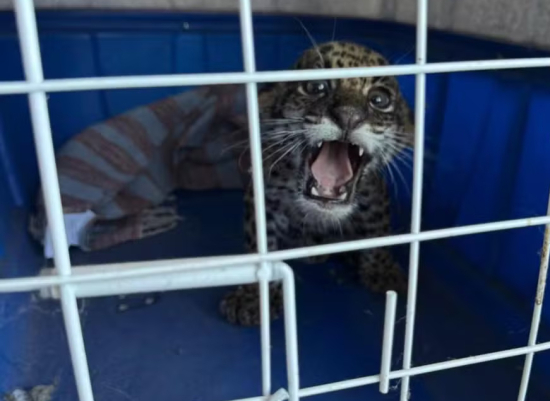 De acordo com os policiais, o filhote estava debilitado e mal conseguia se locomover. Durante a captura, a equipe utilizou um pano para conduzi-lo com segurança até a gaiola, evitando riscos tanto para o animal quanto para as pessoas. A cena chamou atenção por lembrar uma “brincadeira”, já que o felino chegou a se pendurar no tecido antes de ser colocado no recipiente de transporte.