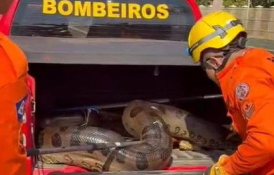 Uma cobra sucuri de aproximadamente cinco metros de comprimento foi resgatada pelo Corpo de Bombeiros Militar de Mato Grosso (CBMMT), na manhã desse sábado (06), em Lucas do Rio Verde (332 km de Cuiabá).
