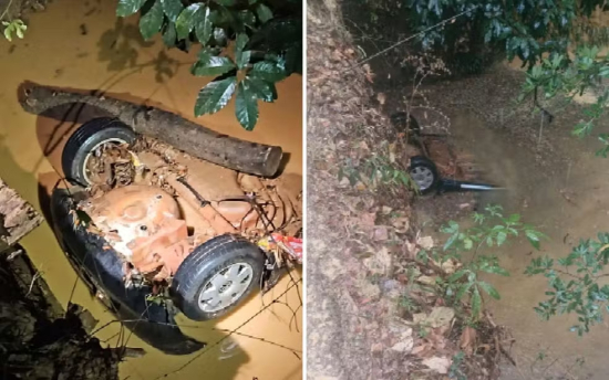 Segundo os bombeiros, o carro ficou com as rodas viradas para cima, totalmente submerso. O acesso ao local foi complicado pela lama e o volume de chuva.